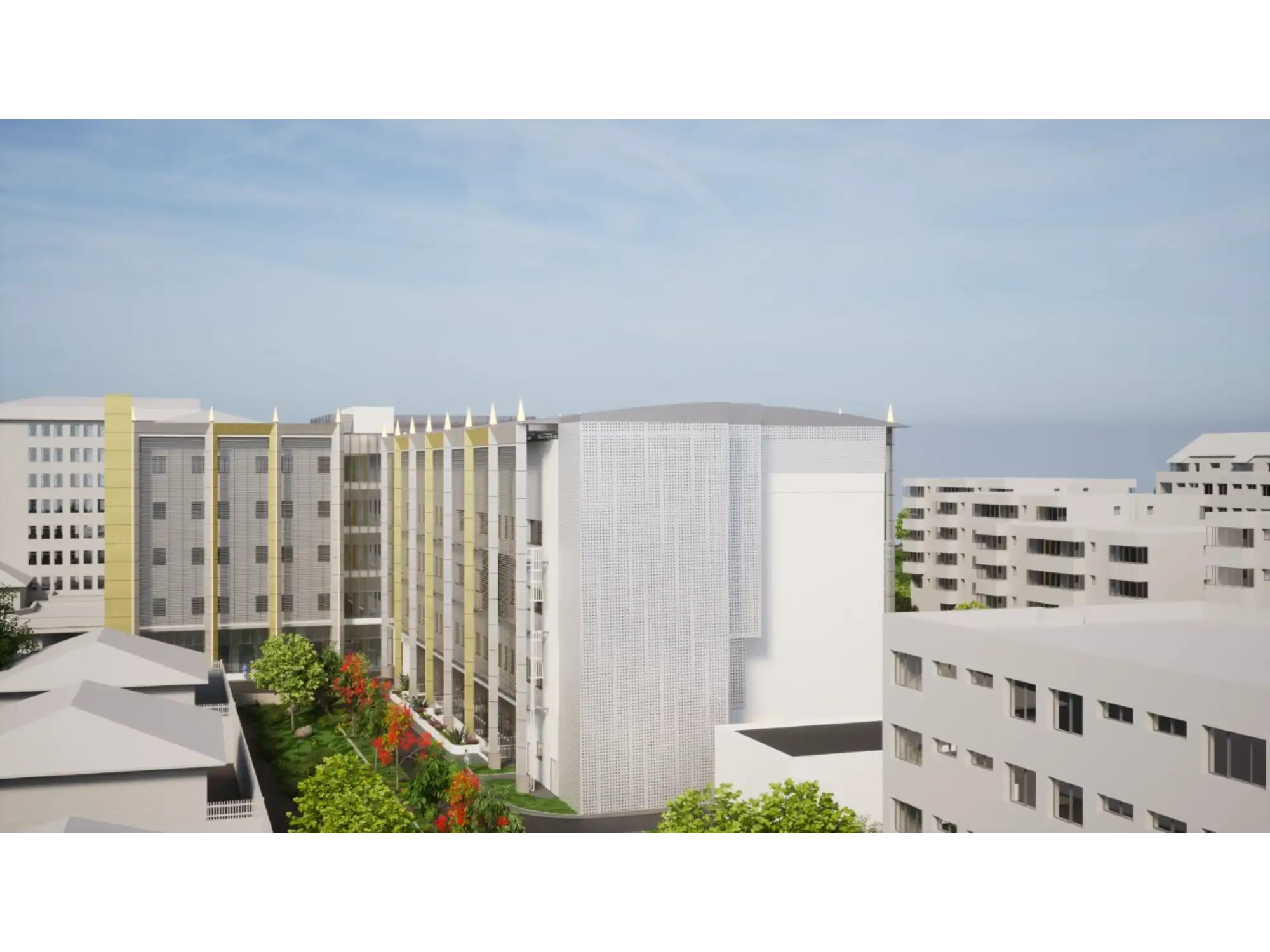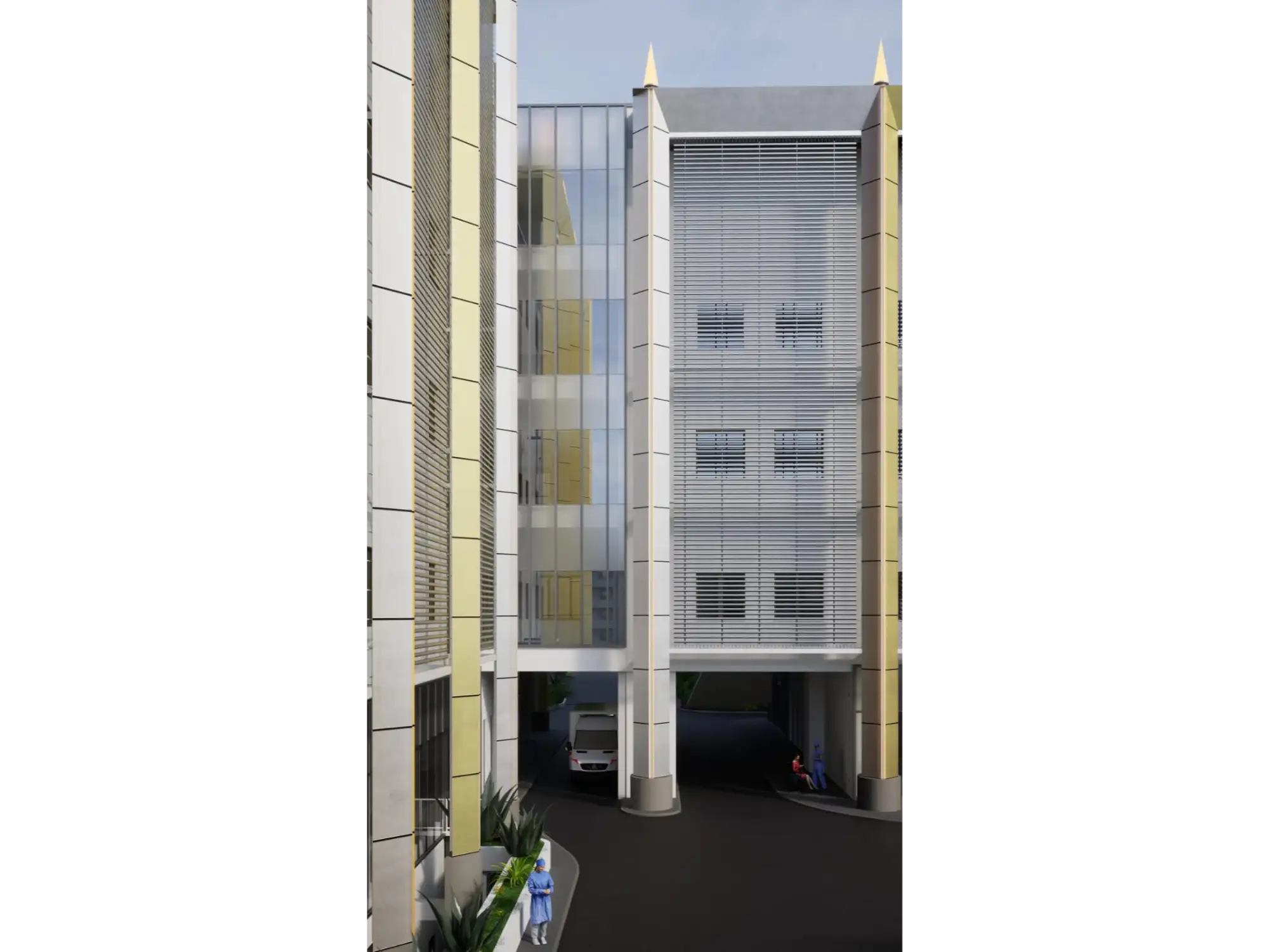 O novo edifício integra funções médicas e técnicas distribuídas verticalmente:
