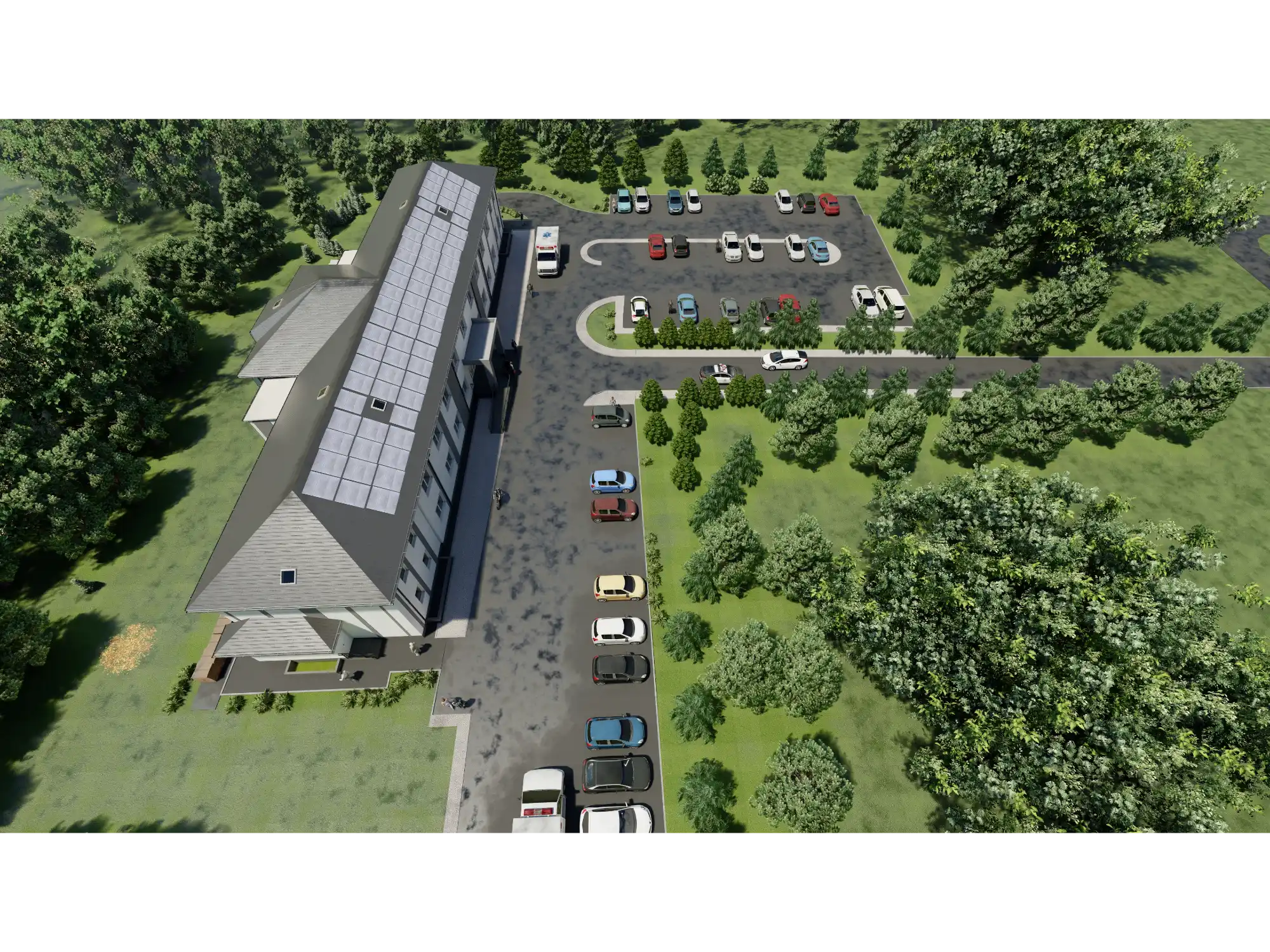 A volumetria e as fachadas foram concebidas de modo a refletir o carácter da instituição médica e a respeitar os princípios da arquitetura contemporânea coerência, elegância e sustentabilidade, integrando o edifício na categoria edifícios verdes capazes de enfrentar as tecnologias modernas.